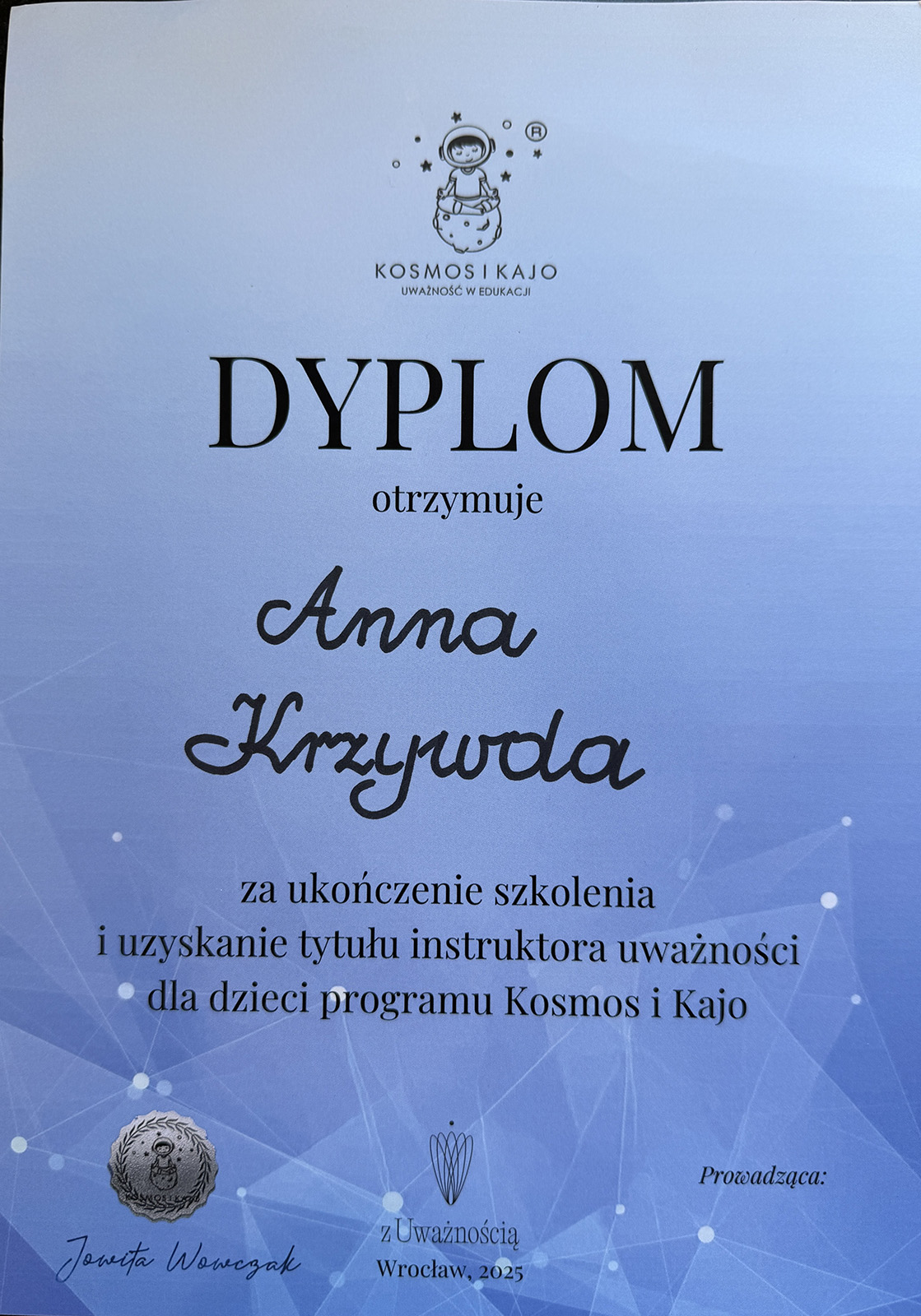 Z pasją dzielę się praktyką uważności, wspierając innych w budowaniu świadomego i pełniejszego życia. Moje zajęcia tworzą przestrzeń do zatrzymania się, nabrania perspektywy i odkrycia nowych sposobów radzenia sobie ze stresem oraz wyzwaniami życia codziennego.